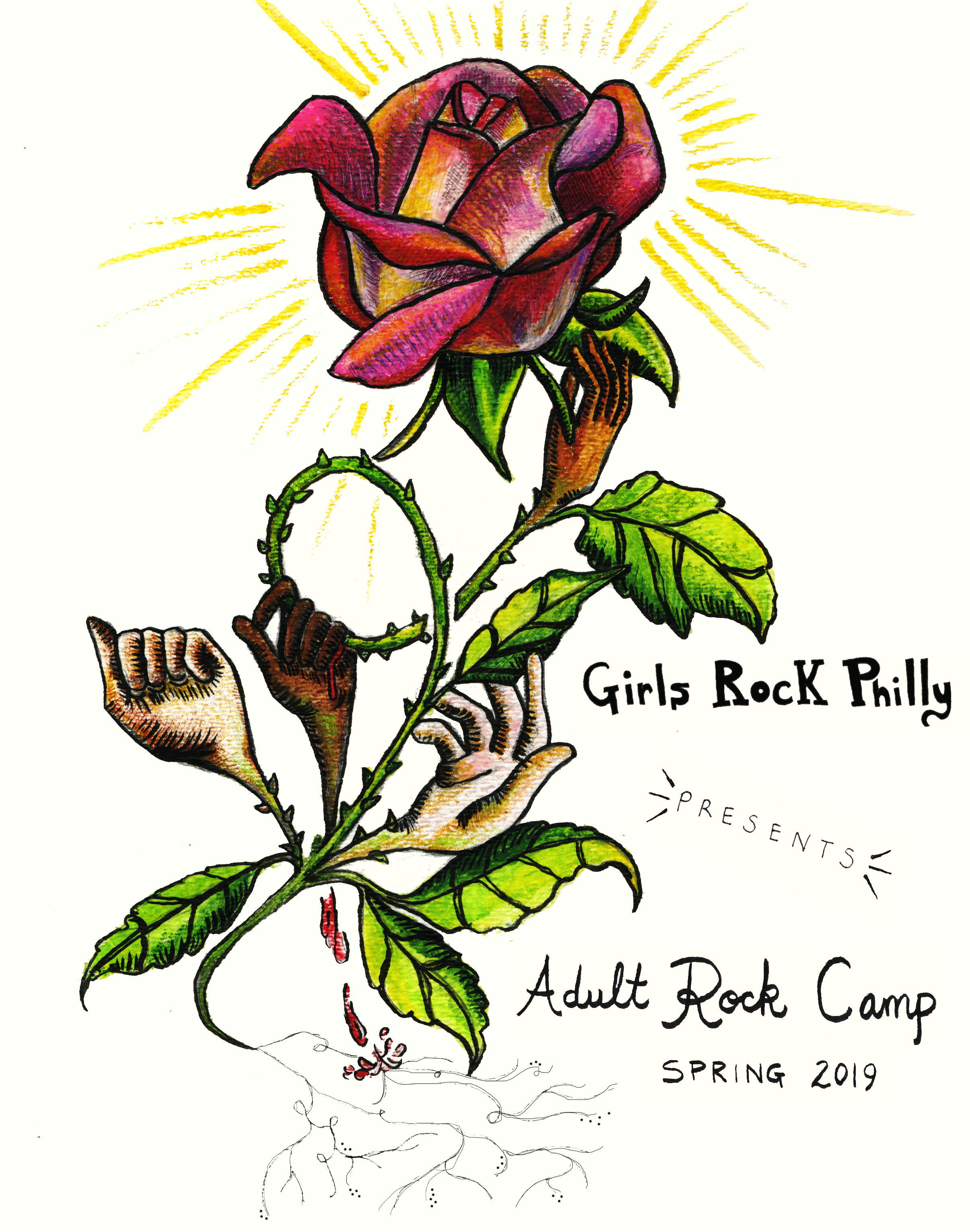 The Design Partnership is a year long partnership between Girls Rock Philly and a local artist. In exchange for a small stipend of $300, the local artist commits to generating 3 major camp / special event designs for Girls Rock Philly.